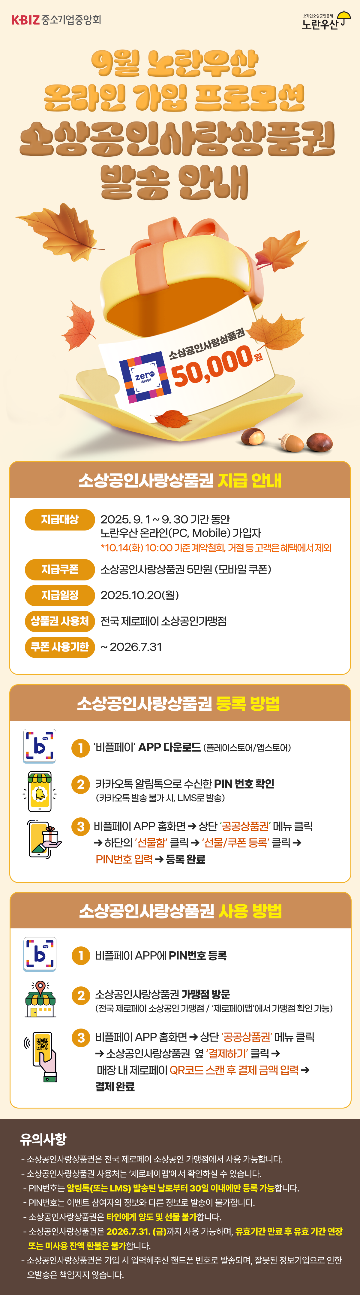 [이벤트/복지] 노란우산 9월 온라인 가입 프로모션 상품권 발송안내